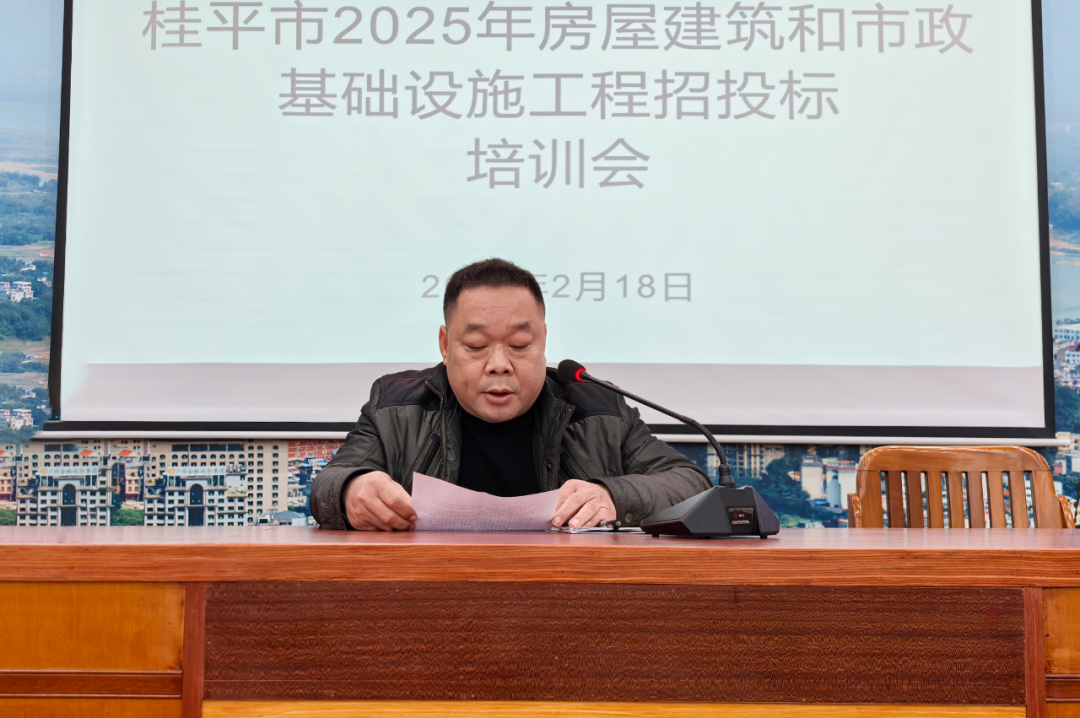 桂平市住房和城鄉建設局副局長廖亮出席并發表講話,廖局長闡述了此次培訓的意義,他指出:“在國家加速推進基礎設施建設、持續優化營商環境的宏觀背景下,桂平市作為地方發展的重要節點,房屋建筑和市政基礎設施工程的招投標工作承載著推動區域經濟發展的重任。本次培訓旨在深入解讀國家最新招投標政策法規,提升從業人員的職業素養,共同推動桂平市招投標工作向更高水平邁進。”