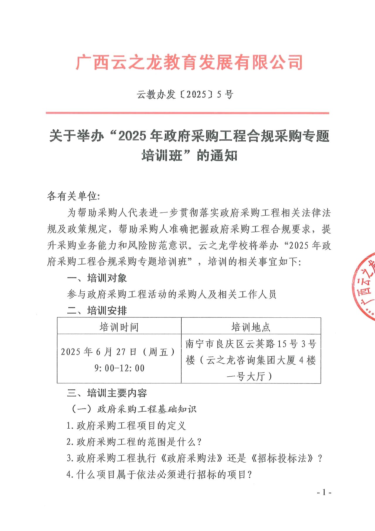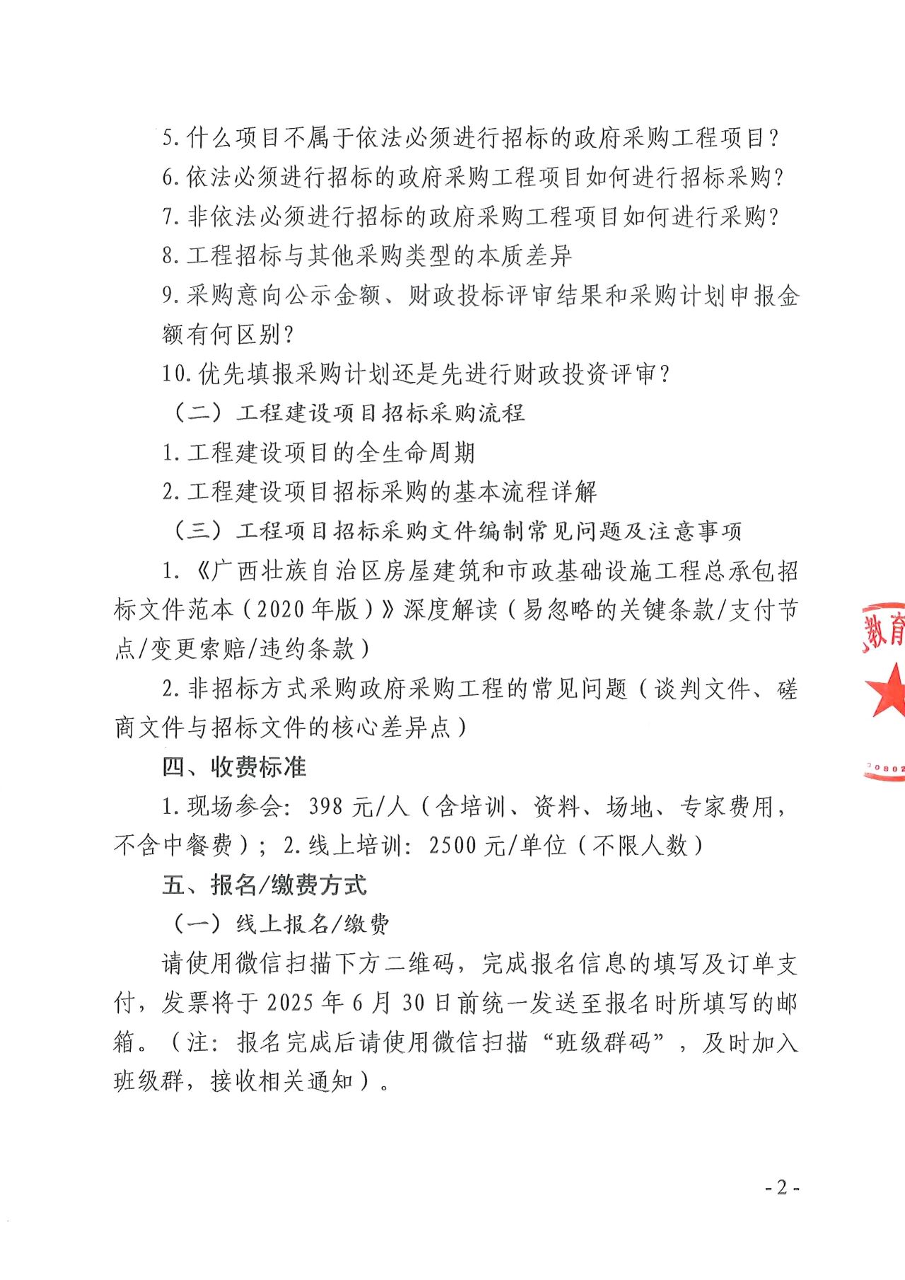 關于舉辦“2025年政府采購工程合規采購專題培訓班”的通知